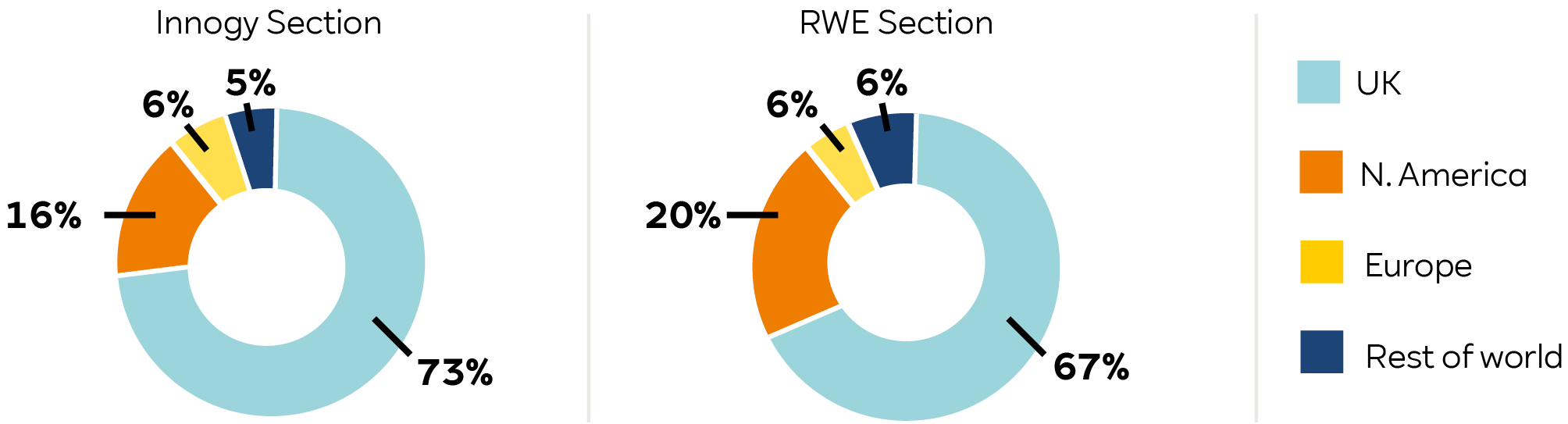 A material proportion of assets are invested in the UK, this reflects our strategy to align investments with UK inflation and match members’ benefits over time. The RWE Group also holds assets in overseas investments to spread risk across different markets and maintain a well-diversified portfolio. We carefully manage the impact of currency movements so that changes in the exchange rates do not significantly affect the overall value of the investments.